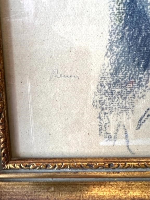 Americal Eclectic is honored to present this intimate pastel study by Pierre-Auguste Renoir, a leading luminary of the French Impressionist movement. The work captures a young woman in a hatβa quintessential Renoir motifβrendered with the soft, feathery strokes and luminous color palette that defined his “Rococo” influenced 1880s period. Pencil-signed by the artist, this 17.5″ x 13″ work serves as a window into the master’s private practice as a draftsman, where he explored the delicate interplay of light and human form.