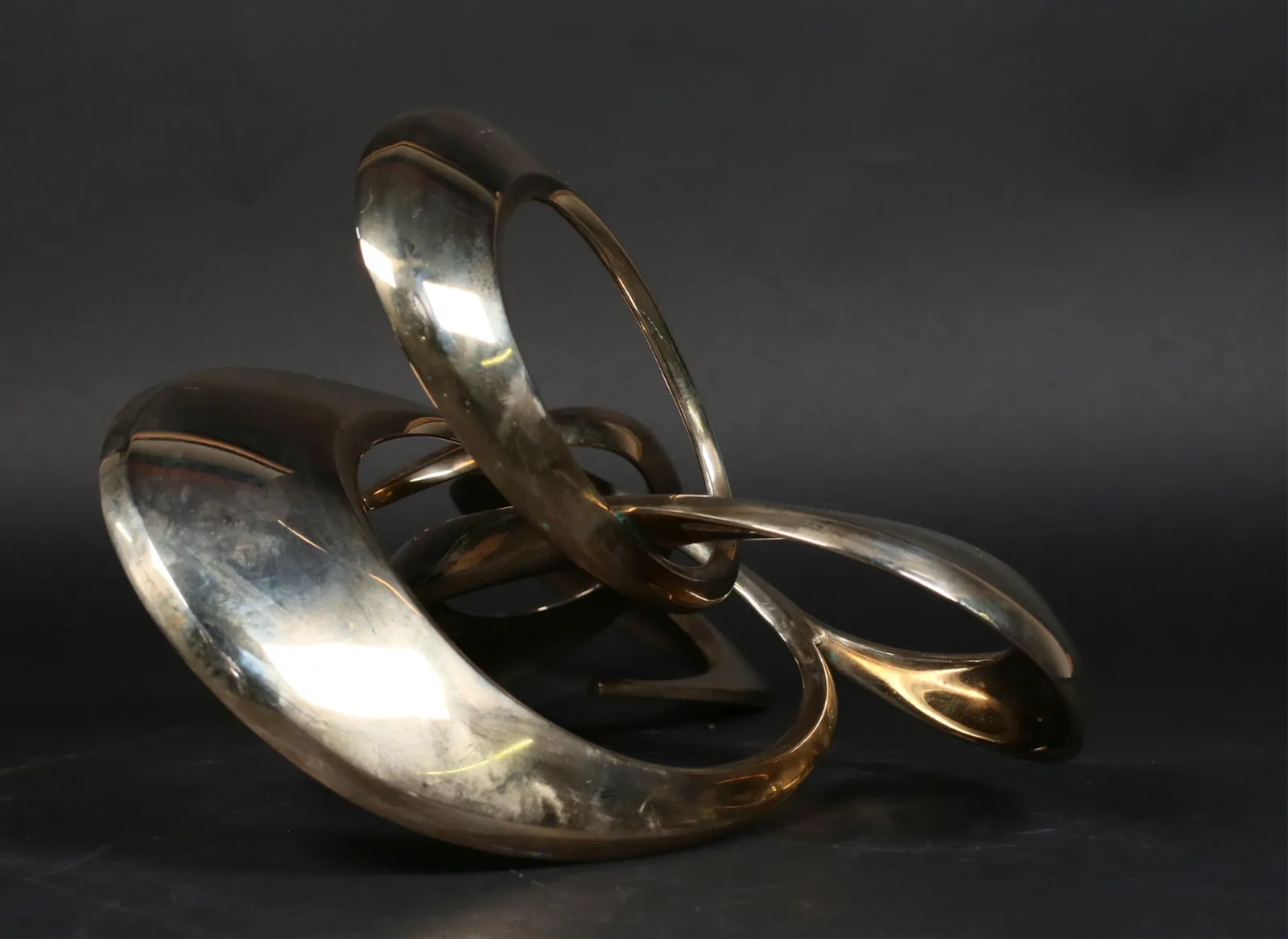 Americal Eclectic is proud to present “Courtship,” a masterwork of abstract fluidism by the renowned California sculptor Bob Bennett (1928–2003). Created in 1989, this 14-inch bronze captures the essence of partnership and rhythmic balance through Bennett’s signature “ribbon” forms—where solid metal appears to flow with the grace of silk.
