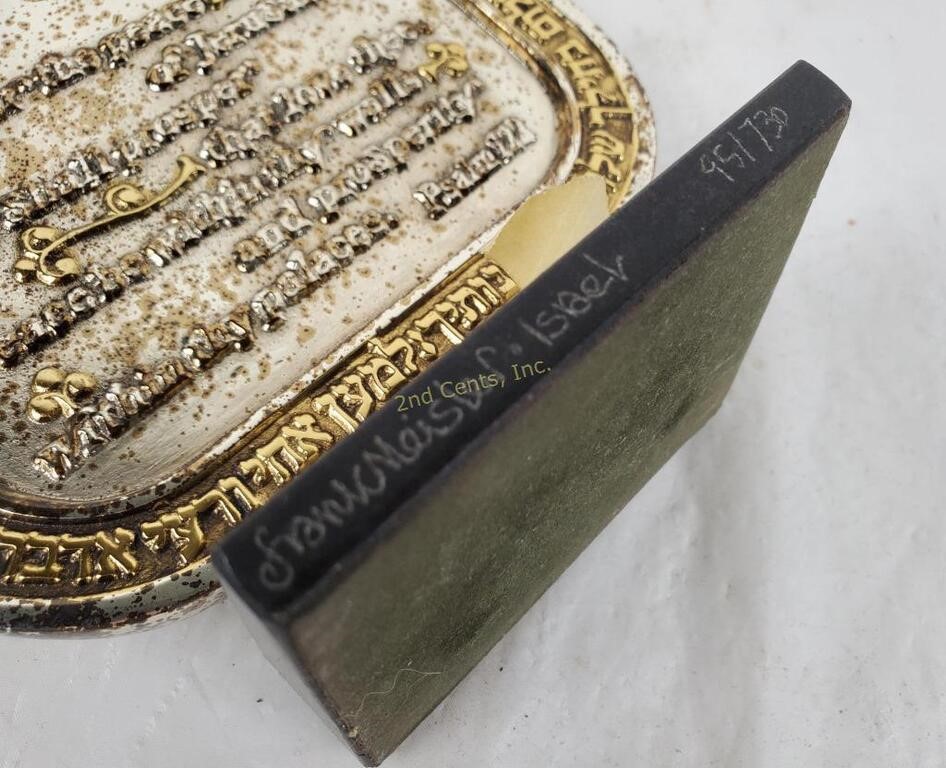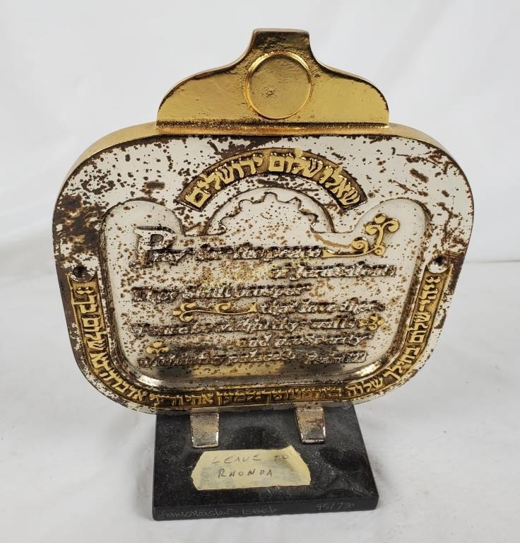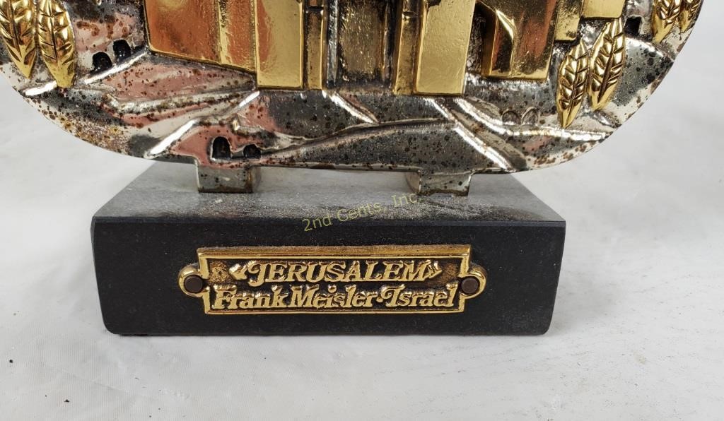 The sculpture captures the eternal spirit of Jerusalem, with its iconic domes and ancient walls rising in brilliant detail from an elegant marble base. Meisler’s signature style—blending industrial precision with organic texture—makes this piece a commanding focal point for any collection. Weighing 2 kg and standing as a testament to peace and heritage, this plaque is an investment-grade work of contemporary Judaica.