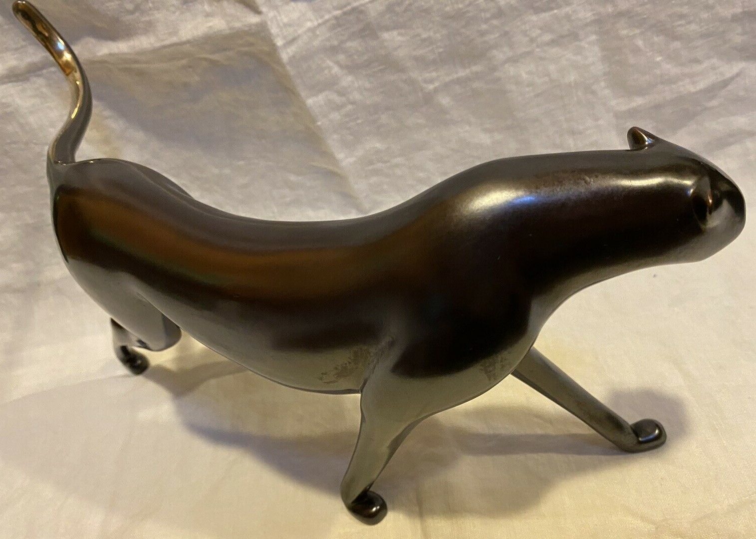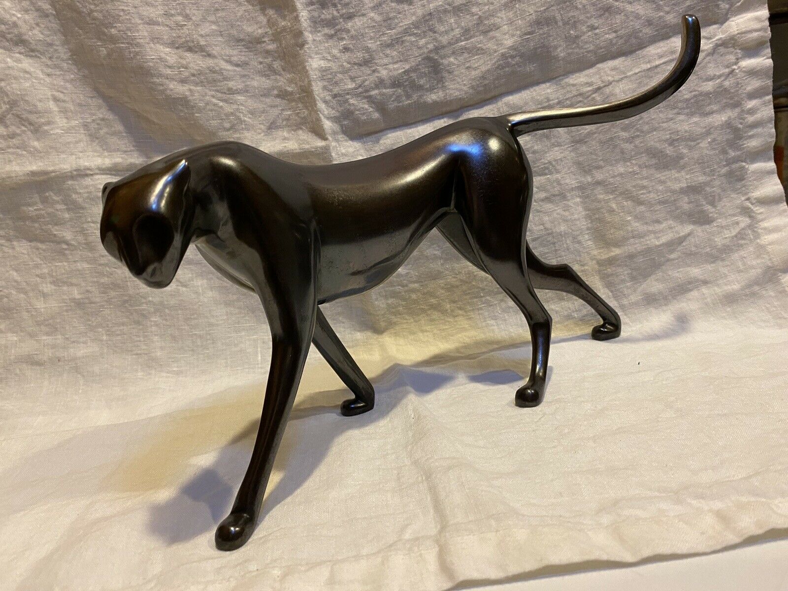 Americal Eclectic is proud to feature a stunning masterwork by the late Loet Vanderveen. This “Graceful Cheetah” perfectly embodies the artist’s philosophy of capturing the “soul of the beast” through sleek, aerodynamic lines. Created in his legendary Big Sur studio, this bronze sculpture captures the cheetah in a moment of fluid motion, emphasizing its legendary speed and elegance.
