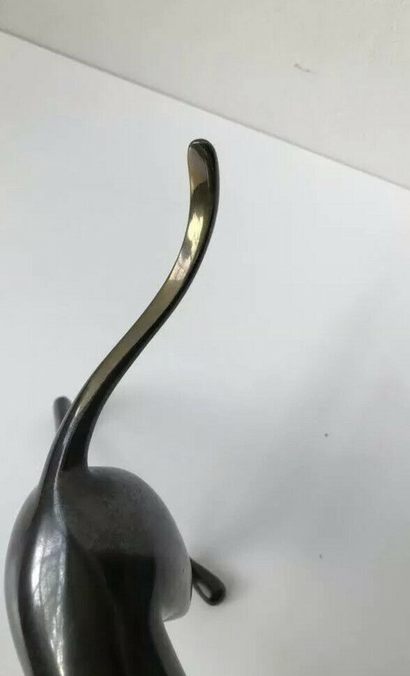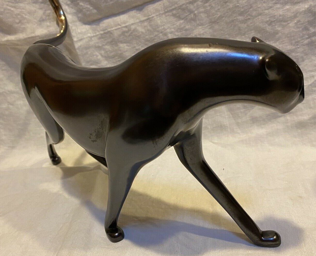 The work features a deep, hand-applied charcoal-brown patina, beautifully contrasted by high-polished bronze (brass-tone) highlights on the crest of the tail. Hand-signed and numbered 113 of a restricted edition of 750, this 12.25-inch sculpture is a sophisticated focal point for any modern collection of animalier art.