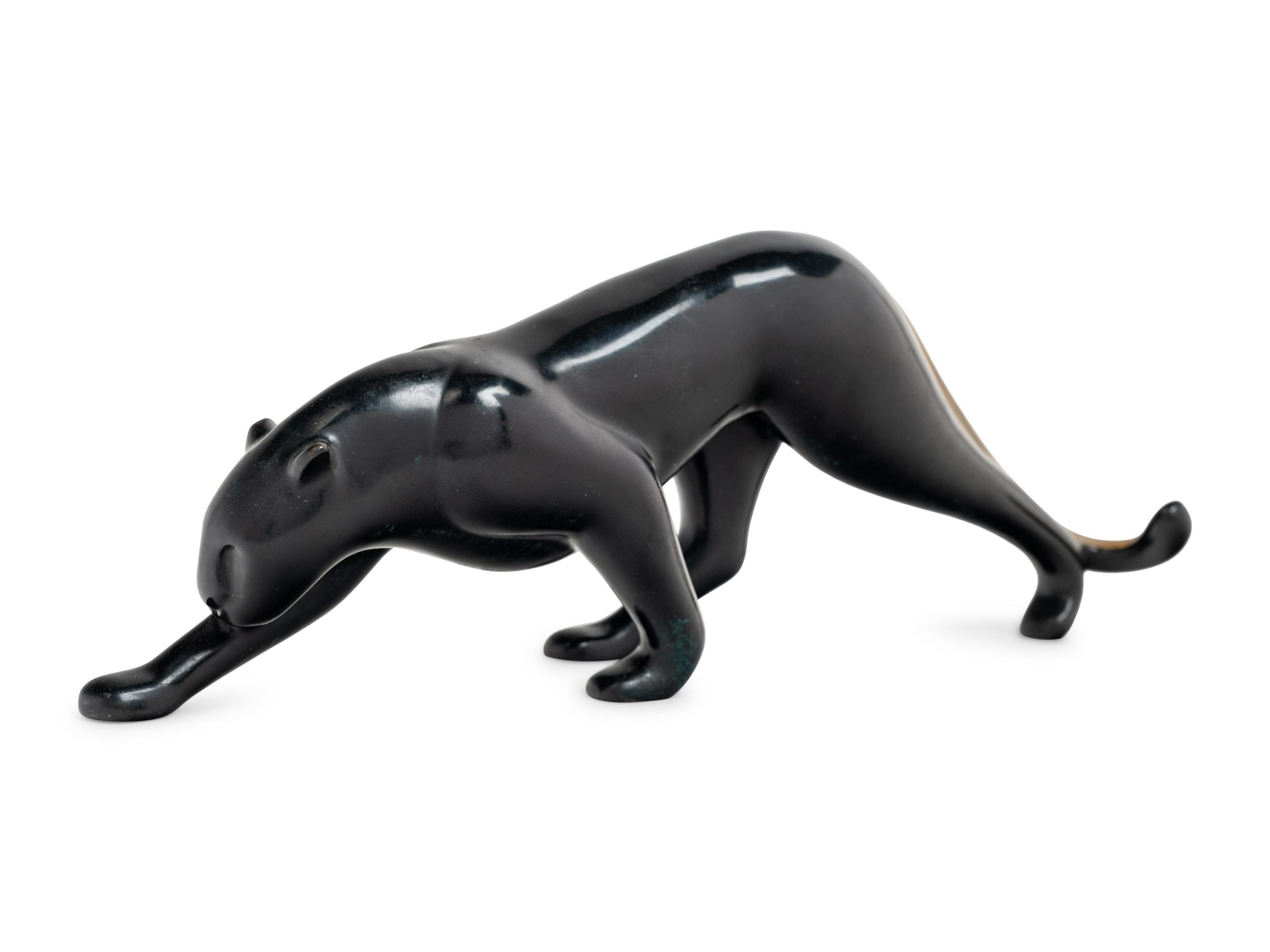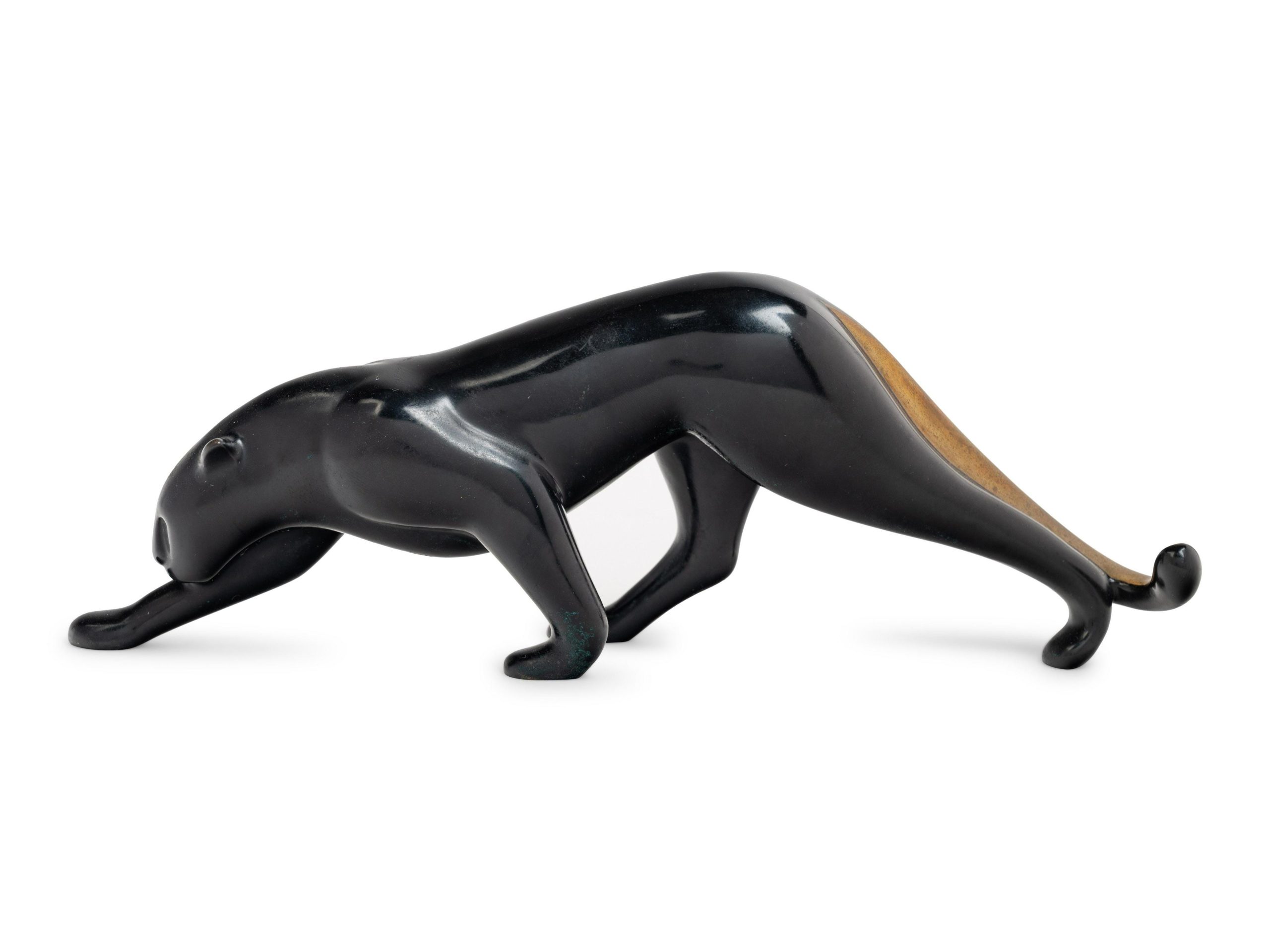 Americal Eclectic is pleased to offer this evocative bronze study by the legendary Loet Vanderveen. Titled “Stalking Panther”, this 10-inch work is a masterclass in tension and form. Vanderveen strips away the ferocity of the predator to reveal the pure, elegant geometry of its motion.