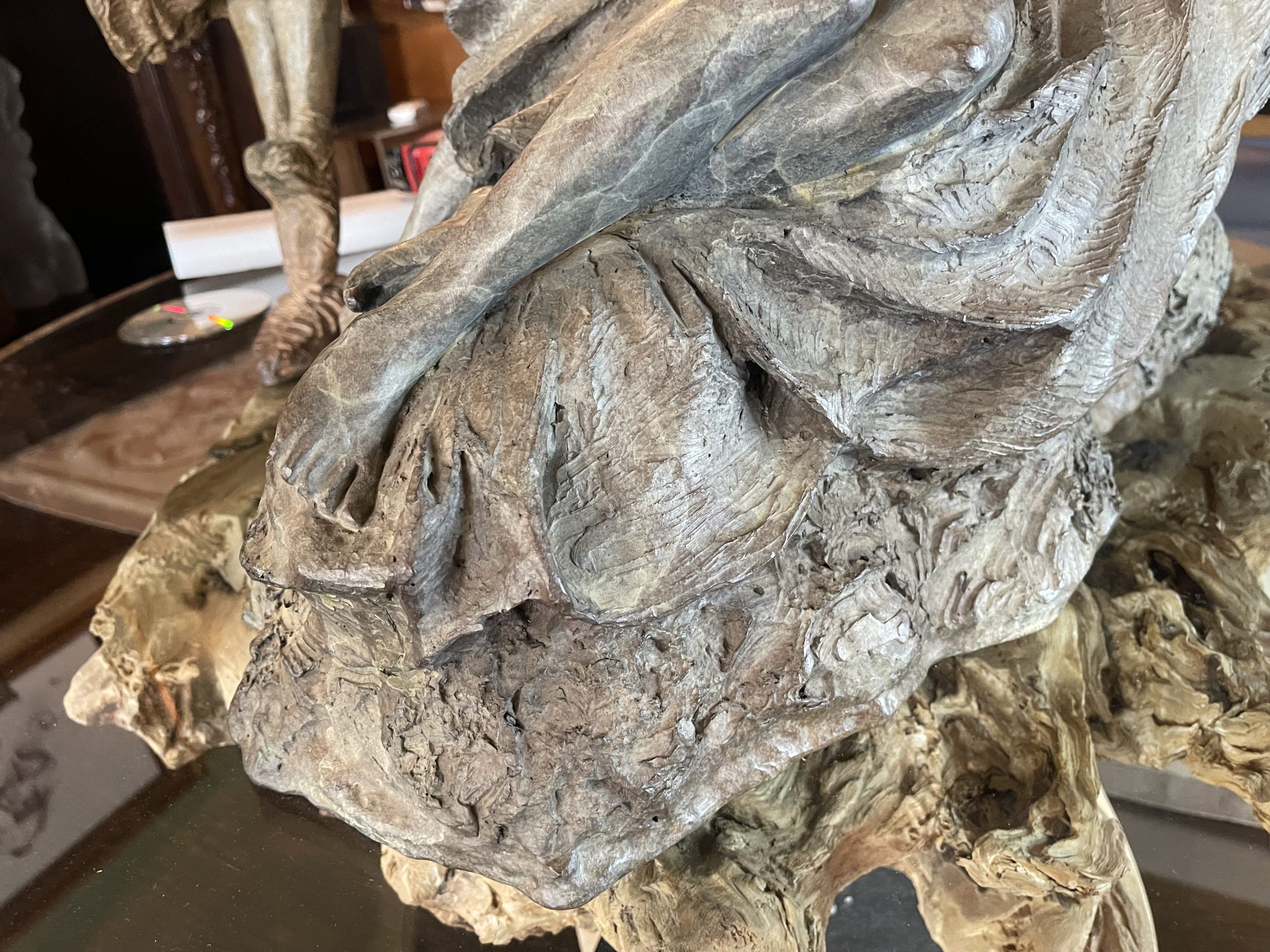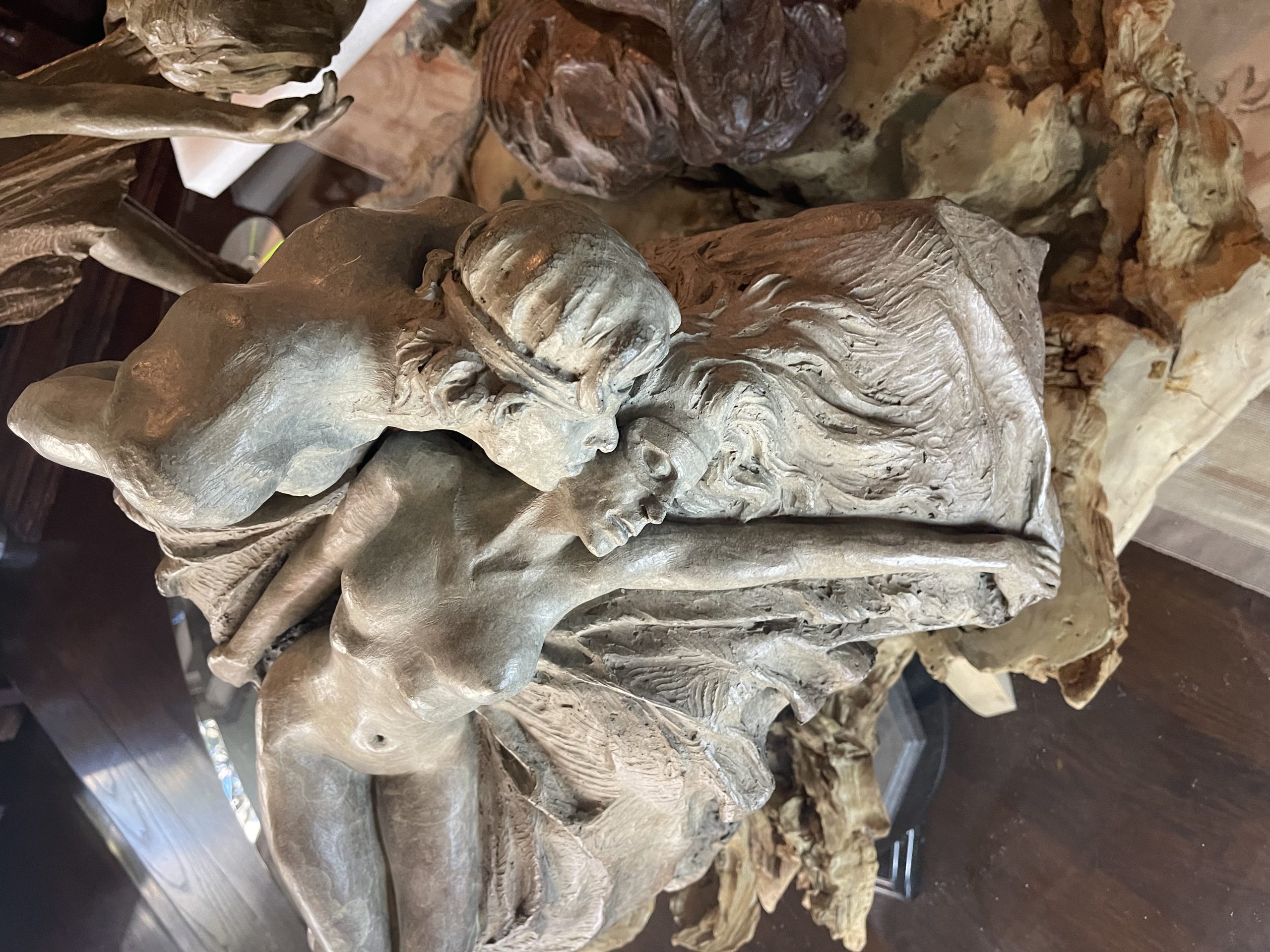 The sculpture depicts figures in a graceful, almost ethereal state of unveiling, representing the facades we maintain and the essential truths beneath. Cast in high-quality bronze with a multi-tonal patina, this piece stands 18 inches high and spans 26 inches, offering a commanding presence. Tuan’s works are celebrated globally for their “Balance,” a philosophy born from his own journey from a refugee camp to the pinnacle of the American art world.
