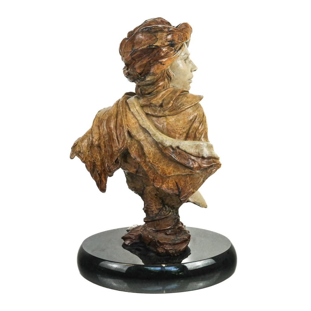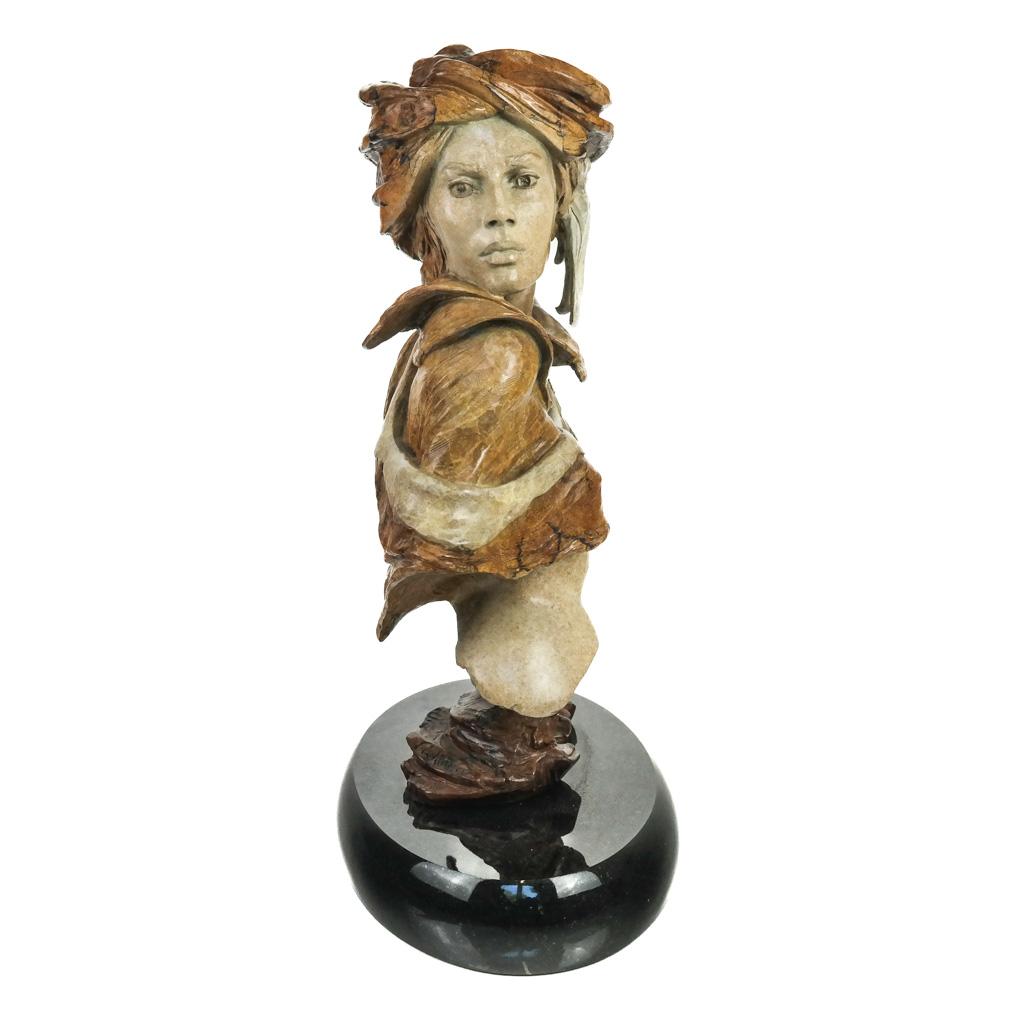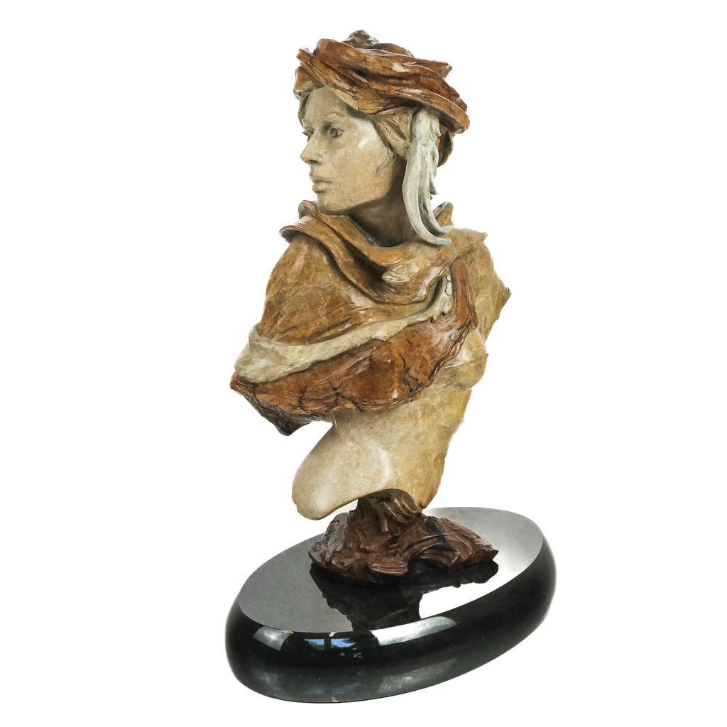 Martin Eichinger’s “Adrenaline Rising” is a tour de force of emotional bronze. This 18-inch painted bronze figural group is part of Eichinger’s pursuit of “Post-Modern Romanticism”—art that celebrates the human spirit’s capacity for intensity and foresight. The sculpture is modeled with a hauntingly beautiful focus, the eyes gazing into an unseen distance, capturing the exact moment anticipation turns into action.