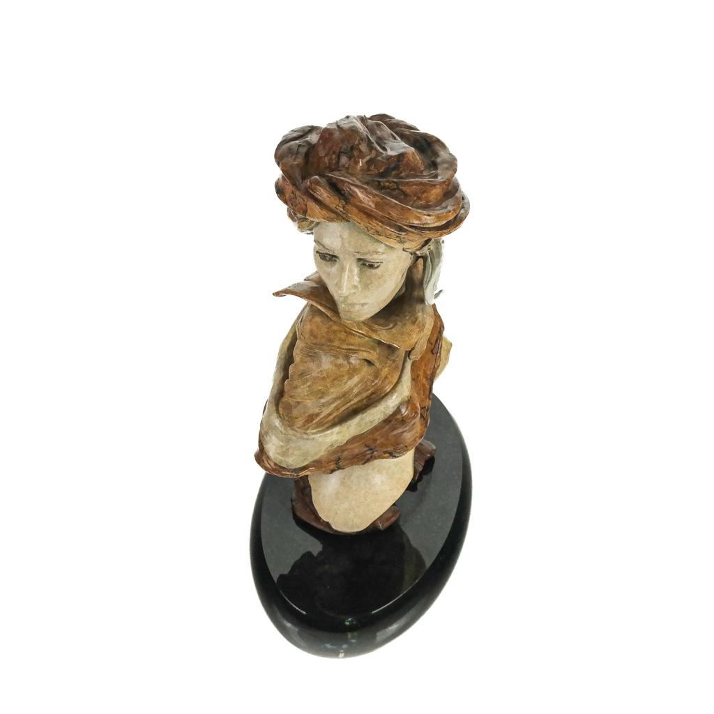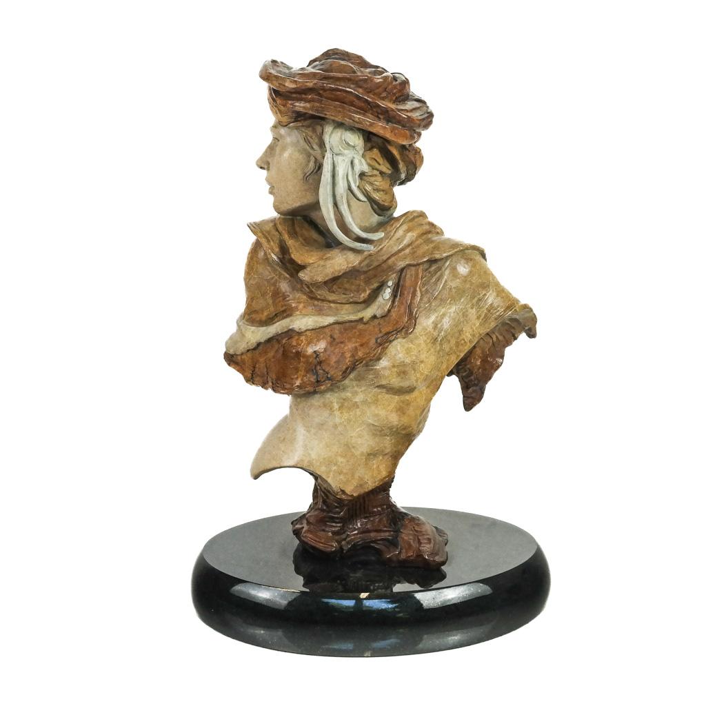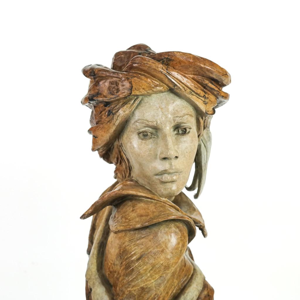 Martin Eichinger’s “Adrenaline Rising” is a tour de force of emotional bronze. This 18-inch painted bronze figural group is part of Eichinger’s pursuit of “Post-Modern Romanticism”—art that celebrates the human spirit’s capacity for intensity and foresight. The sculpture is modeled with a hauntingly beautiful focus, the eyes gazing into an unseen distance, capturing the exact moment anticipation turns into action.