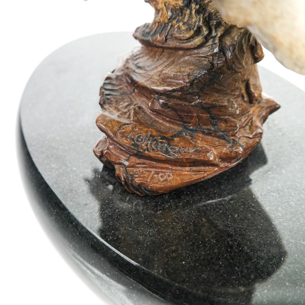 - Condition Report: The sculpture is in Overall Good Condition. The painted bronze finish—a signature Eichinger technique—retains its original depth and variegated tones. There are no signs of chips to the paint or structural fatigue in the bronze.