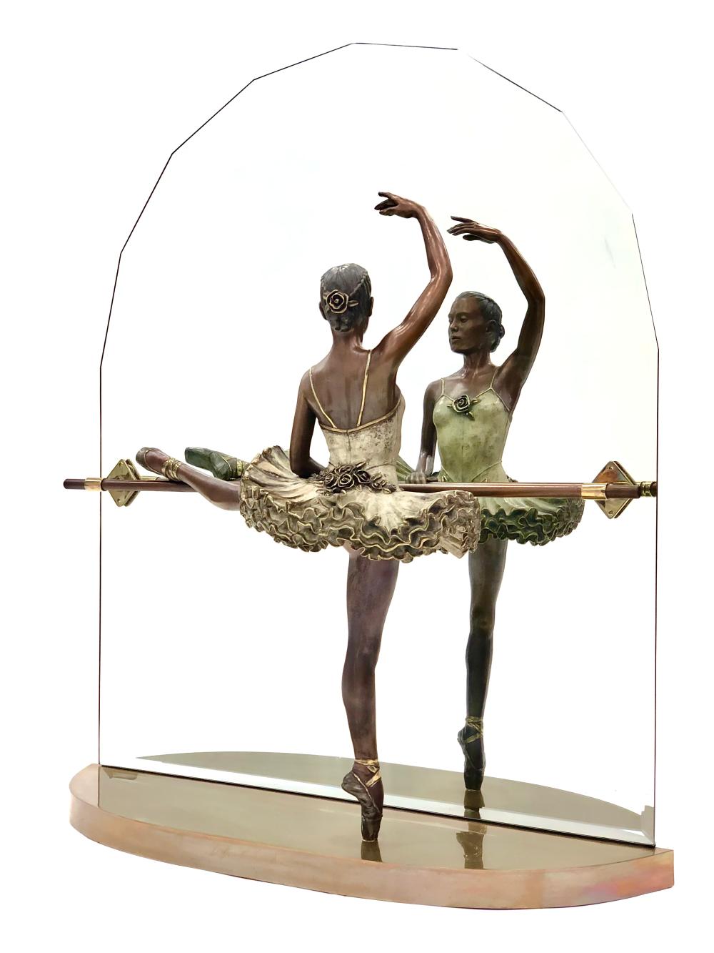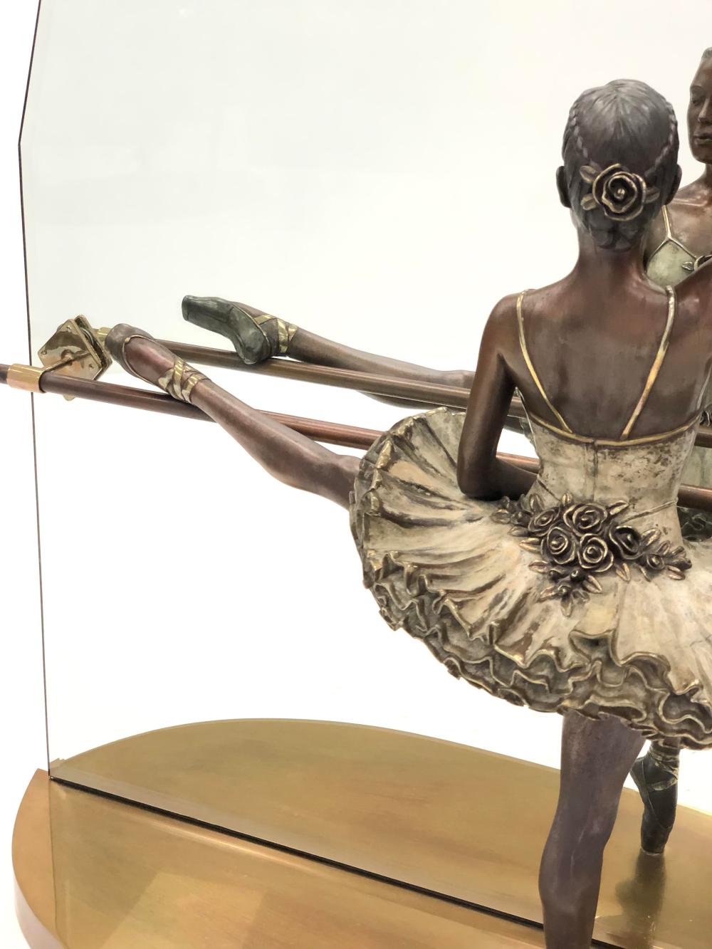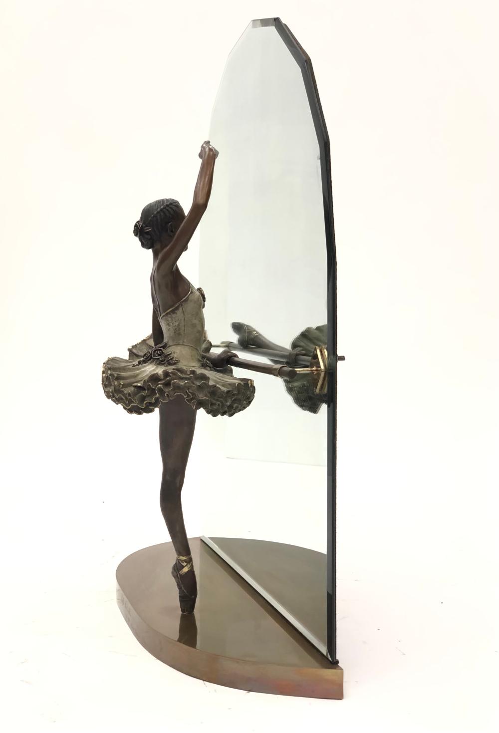 • Structural Integrity: The bronze is in excellent condition, with the original hand-applied patina showing a sophisticated depth. The arched mirror—the signature of this composition—is pristine.