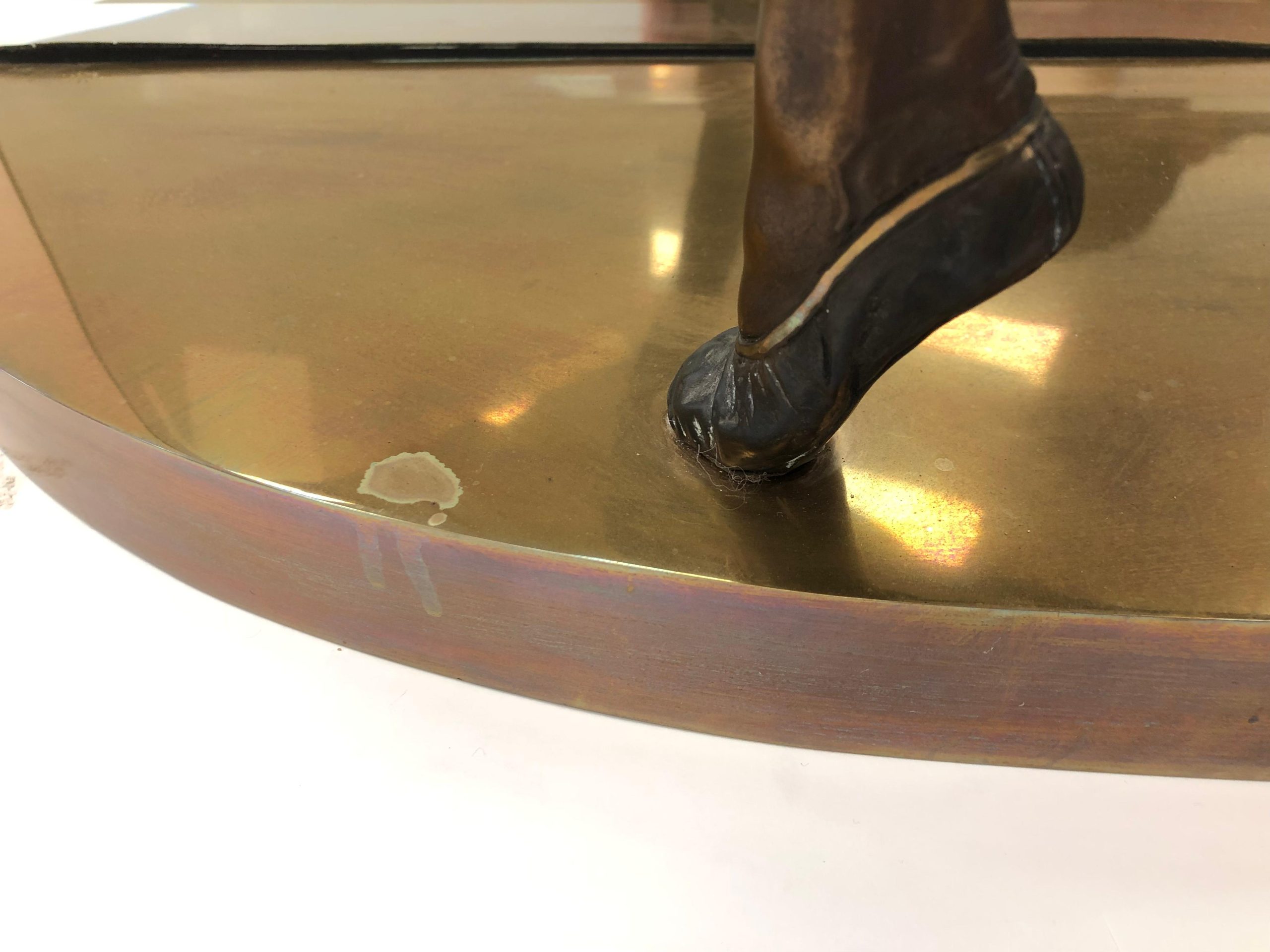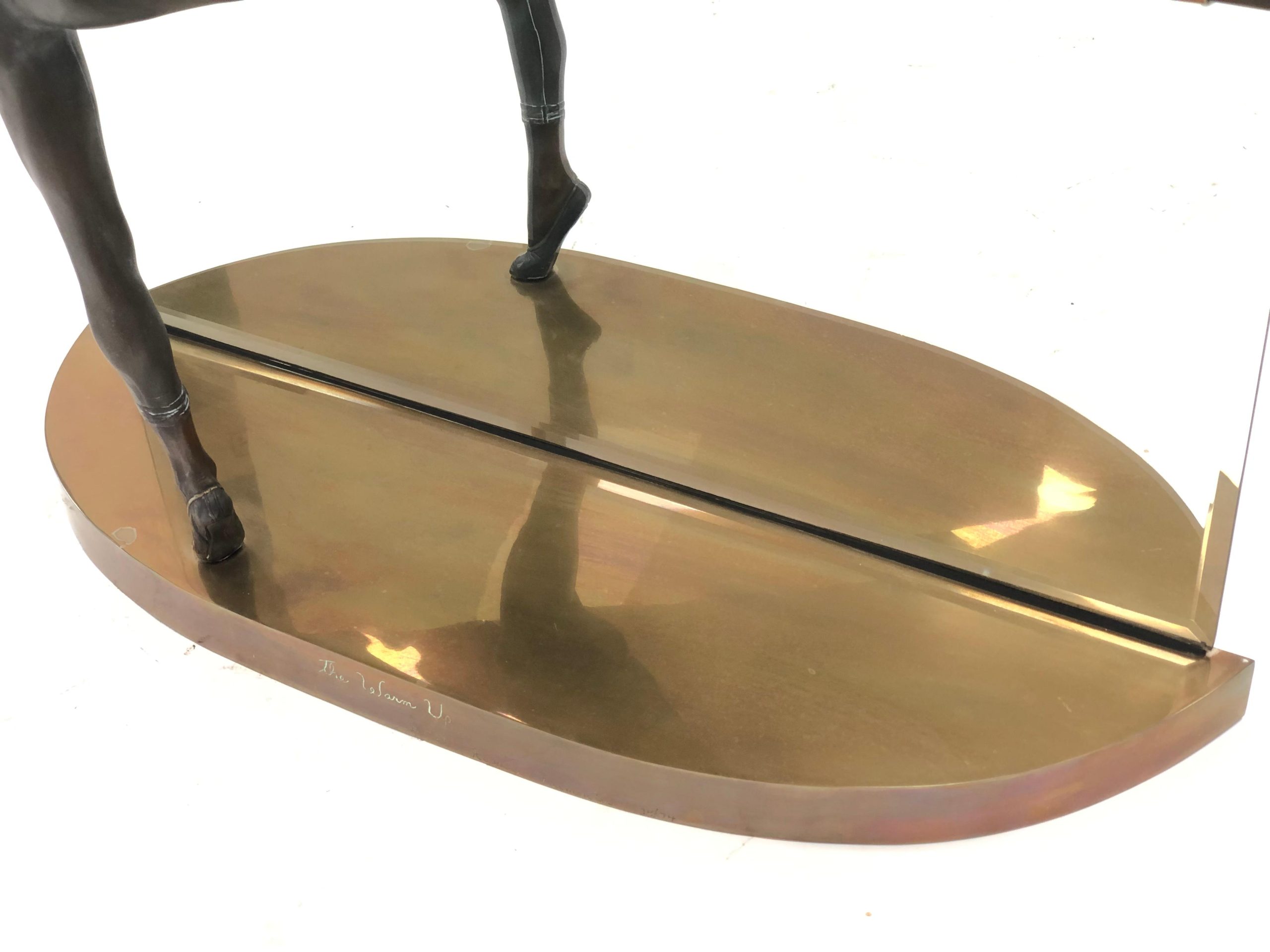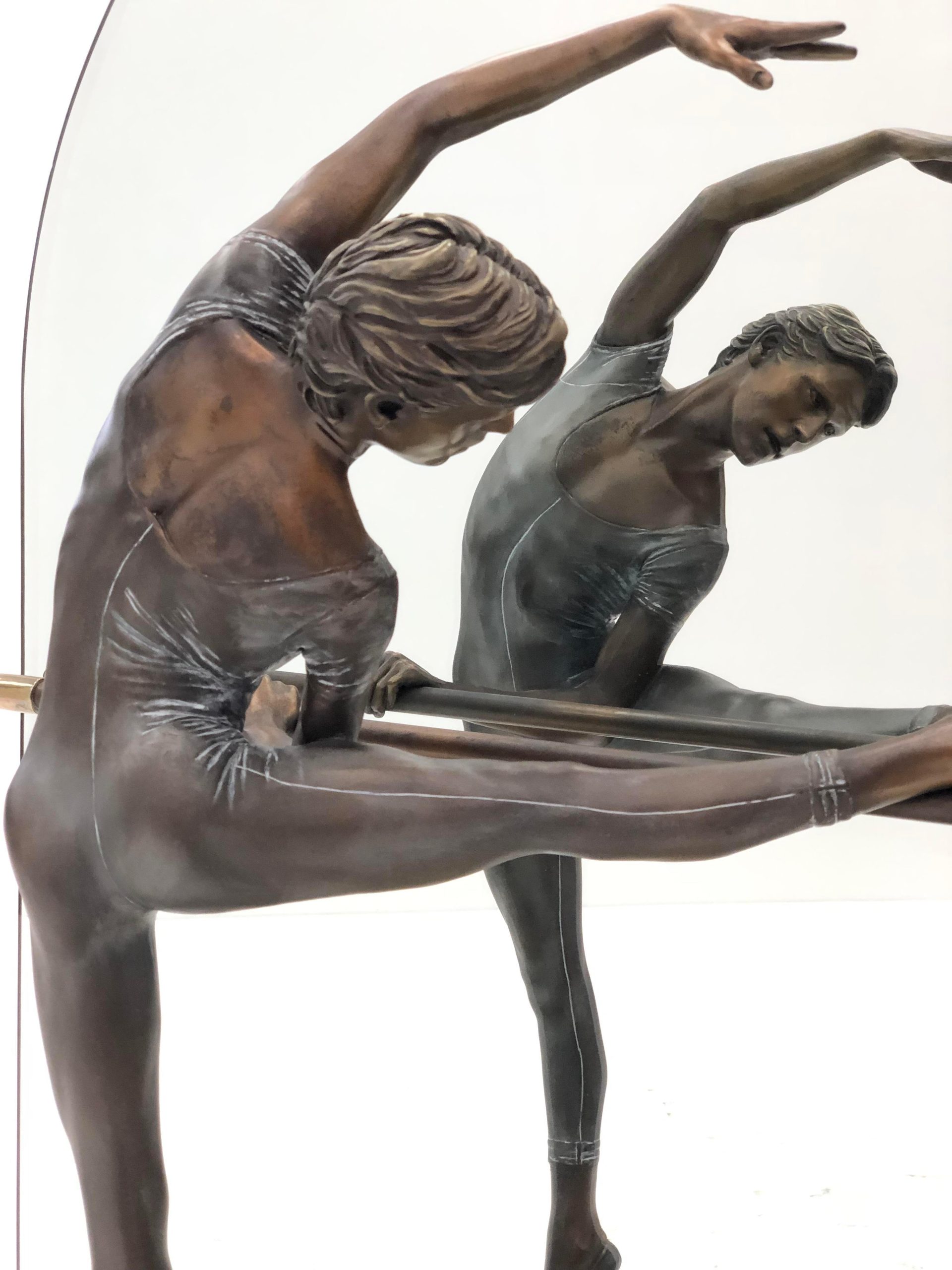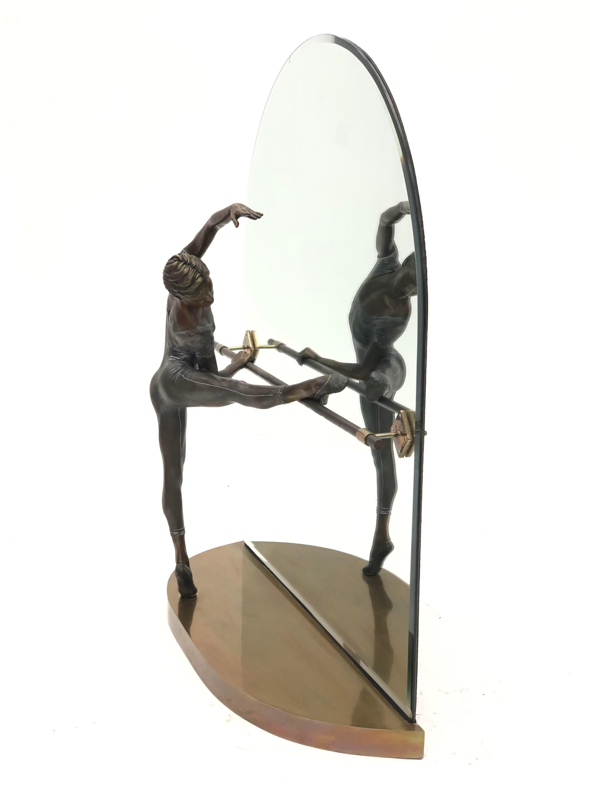 The arched top mirror serves as a silent partner in the composition, reflecting the dancer’s form and allowing the collector to appreciate the intricate musculature of the pose from 360 degrees without moving the sculpture. Created in 1987, this piece belongs to Parmenter’s most influential era, shortly after his work as the official sculptor for the 1984 Olympic Scientific Congress.
