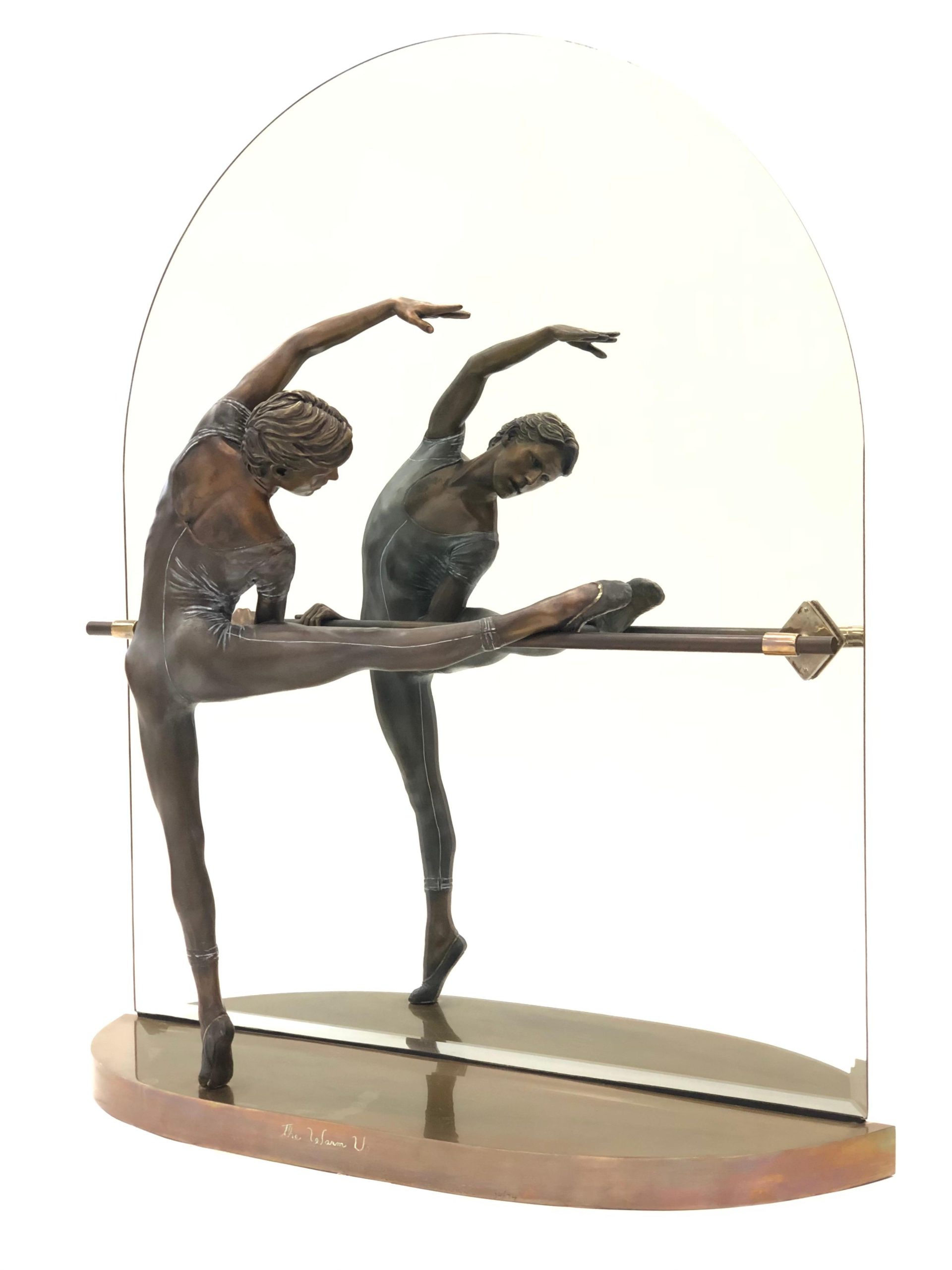 While “Before The Curtain” captures the dancer’s final mental focus, Ramon Parmenter’s “The Warm Up” (1987) immortalizes the physical discipline and strength behind the beauty. This monumental 33-inch bronze depicts a ballerina at the barre, her body engaged in a deep, athletic stretch that showcases Parmenter’s world-class understanding of human anatomy.